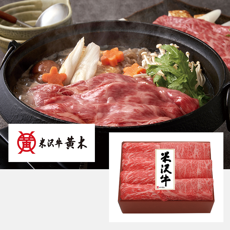 創業大正12年の老舗「米沢牛黄木」が選び抜いた米沢牛すき焼き用の肉は、霜降りと赤身の調和した肩ロースと赤身モモ肉ならではのコクと旨みをお楽しみいただけます。