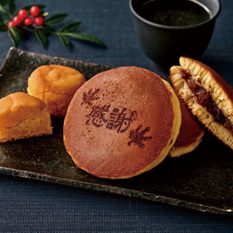 徳島県産なると金時芋を使用したスイートポテトと、なると金時芋の角切り入り粒あんのどら焼きをセット。
