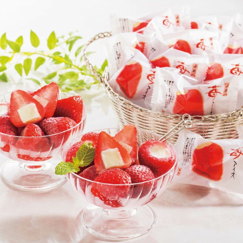 甘酸っぱい苺の中に練乳入りアイスを詰込んだ苺のアイス。苺と練乳入りアイスが絶妙にマッチした苺アイスデザートです。