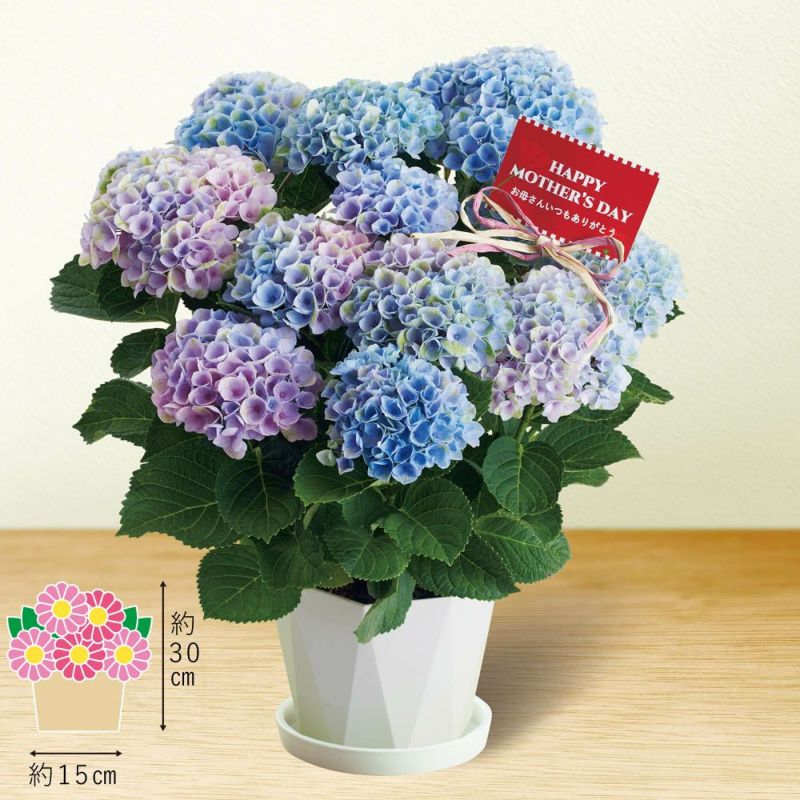淡いブルーやピンクのグラデーションが美しく、同じ鉢が二つとないレインボーカラーのアジサイ。
