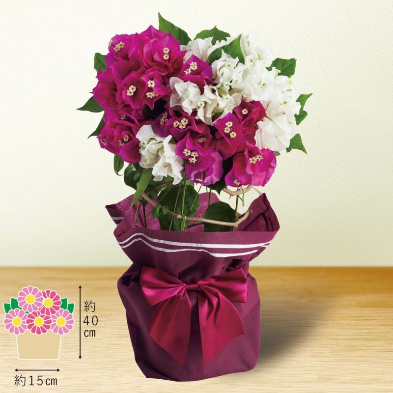 チョコレートパフェのように華やかで可愛らしい2色寄せ植えのブーゲンビレアです。