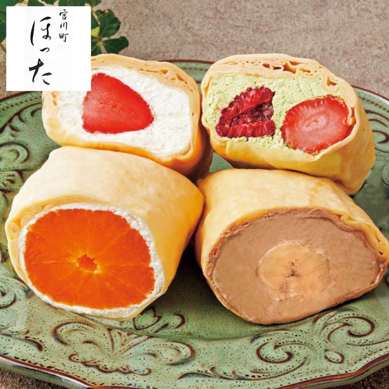 京料理「ほった」店主監修のフルーツづつみは、薄く焼き上げたクレープでフルーツとくりーむで包んだやわらかスイーツです。