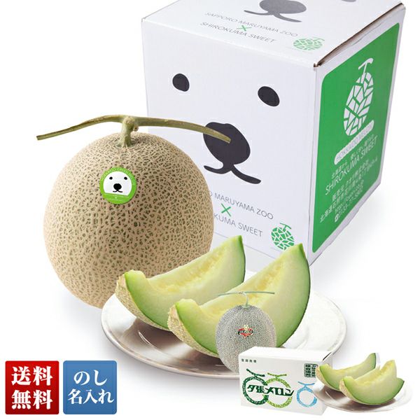 香りと食感が大変上品で、なめらかな舌触りが特長の夕張メロンとかわいらしいシロクマの箱に入った青肉メロンのセットです。