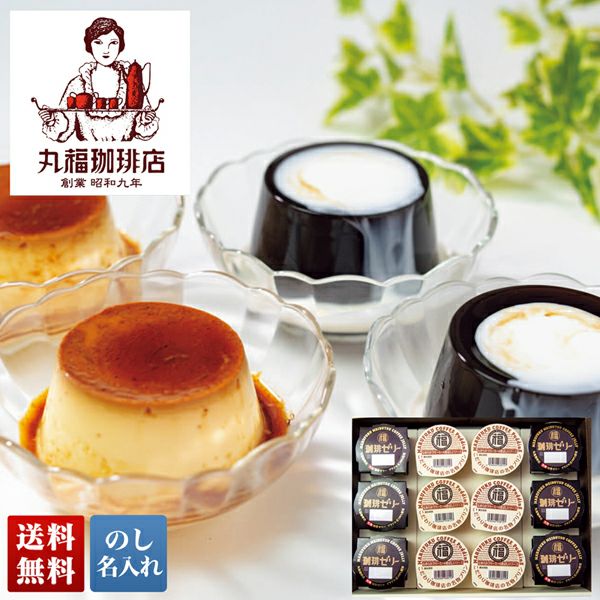 丸福オリジナルコーヒーを使用し、まったりとした濃厚な食感に仕上げた珈琲ゼリーと、昔ながらの風味のクリーミーで濃厚なカスタードプリンのセット。
