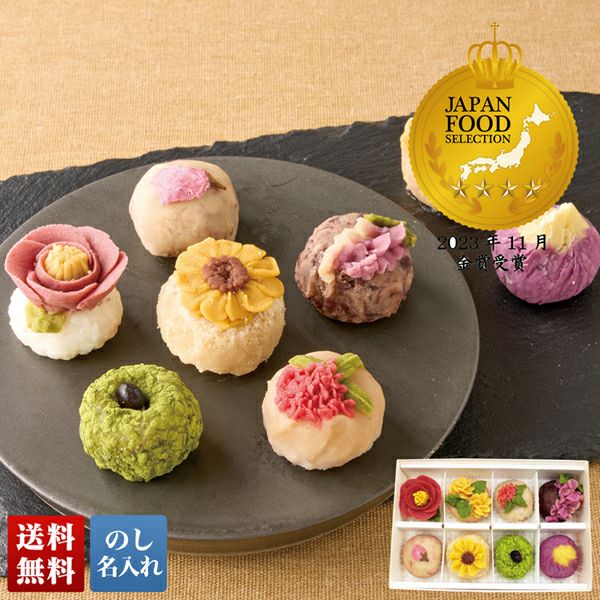 固い蕾が綻び、微笑むように咲く、四季の花々を表現したお花のおはぎの詰合せです。昔ながらのおはぎにこだわり、保存料や着色料は使用せず、ひとつひとつ手作業でお作りしました。砂糖は、白砂糖ではなく『てんさい糖』を使用し、コクとまろやなか甘みのおはぎに仕上げました。美しいお色の餡はすべて、野菜や果物などを素材の色で色付けし、季節のお花を表現したおはぎです。奈良・月ヶ瀬村の有機茶を使用した『お煎茶黒豆』、古都・奈良を感じさせる『吉野の山桜』や『春日の藤』など、ころんと愛らしいおはぎに、きっと心奪われることでしょう。ぜひご賞味ください。■紅つばき毎年3月、「東大寺」で行われる「お水取り」ここで使われる和紙の椿は、東大寺開山堂の南側に植えられた椿から由来しています。苺の餡で出来た椿は、食べることをためらうほど繊細で美しいおはぎです。■向日葵とアーモンド夏を代表するお花・向日葵のおはぎは、夏に旬の南瓜の餡を使用しています。アーモンドダイスやパウダーを纏い、もちっと、さくっと、食感が楽しいおはぎに仕上げました。■吉野の山桜桜の名所として有名な吉野山に咲く、満開の桜をイメージしました。甘じょっぱい餡子に桜の香りが広がる春のおはぎです。■木香薔薇とマンゴー初夏に咲く、フリルのような花びらが可愛い木香薔薇を、爽やかなマンゴーの餡で表現しました。濃厚なマンゴーソースがアクセントの夏らしいおはぎです。■奈良のお煎茶黒豆明治時代より、奈良の月ヶ瀬村にて茶園を営む「月ヶ瀬健康茶園」の有機緑茶を使用しています。緑茶ならではのほろ苦さが、餡の優しい甘みを際立たせます。■金木犀といちじく秋になると満開になる「平城旧跡」の金木犀を彷彿とさせるおはぎです。秋の味覚・無花果をソースに仕上げ、中からソースがとろ~と溢れるおはぎに仕上げました。■春日の藤「春日大社」の社紋にもなっている「藤」は、境内随所に古くから自生しています。古都奈良の趣を感じる粒あんの昔ながらの味わいのおはぎです。 ■お芋の巾着絞り紫芋の餡とさつま芋きんとんを巾着絞りに仕上げました。バターの芳醇な香りがふわっと香る、秋のおはぎです。