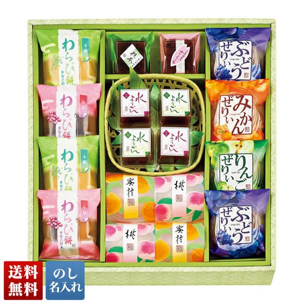 伝統的な風味と口あたりの良さが特長の水ようかんやわらび餅などを詰合せたセットです。