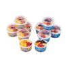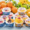 練乳たっぷりのかき氷にみかん、パイン、いちご、小豆をトッピングしています。マンゴー味はマンゴーピューレを使用した練乳かき氷に、マンゴー、いちご、みかん、パインの4種類のフルーツをトッピングしています。