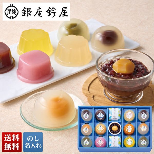 「銀座鈴屋」夏季限定のギフトセット。透明な葛の中に仄かに浮かんで見える餡玉の姿がいかにも涼しげな和涼菓「葛よせ」の他、舌触り滑らかな水ようかん、果汁・ピューレを使用した「フルーツゼリー」、そのまま冷やしてはもちろん、アイスクリームやかき氷に添えても美味しい「栗ぜんざい」など、涼菓の詰合せ。