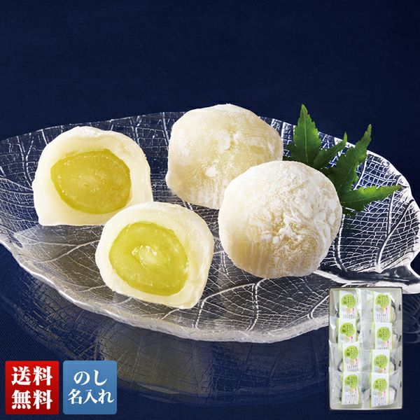 シャインマスカットをまるごと一粒、白餡とお餅で包み込んだコロンとしたフォルムが特長の大福です。