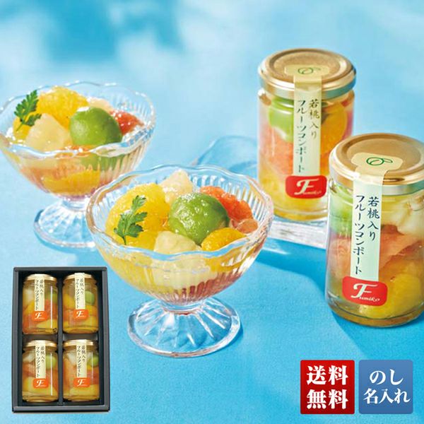 5種類のフルーツがジュレとともに美しく詰め込まれた見た目も鮮やかなコンポートです。
