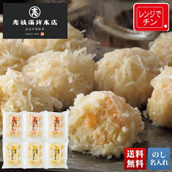 創業1855年、志岐蒲鉾本店の海鮮しゅうまいです。ふわっと仕上げたすり身にいかとえびを包みました。