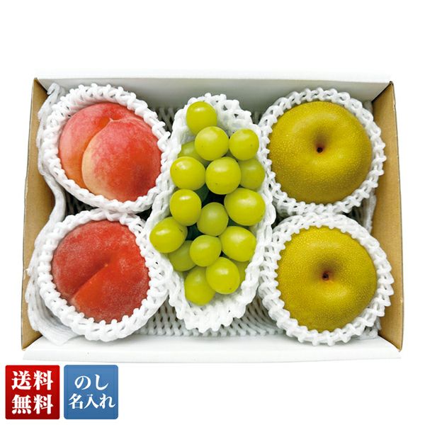 山梨県の名産シャインマスカットや桃と佐賀県産の伊万里梨をバラエティに詰合せました。