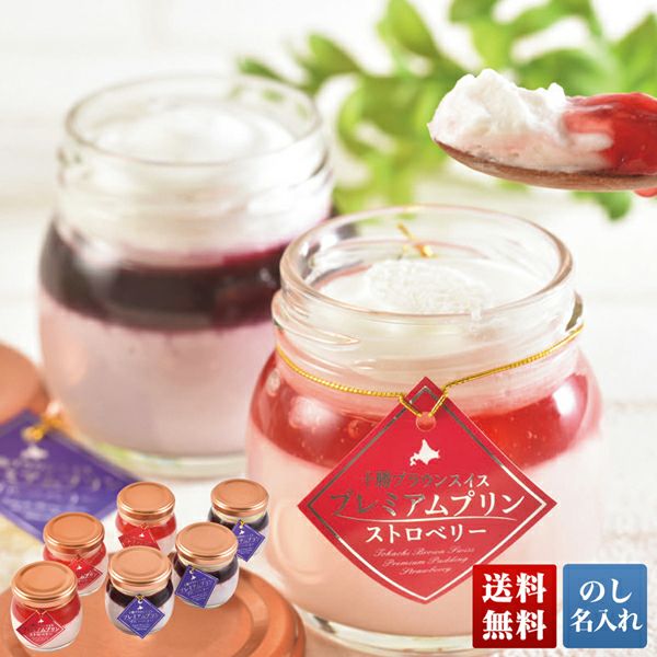 十勝橋本牧場の希少なブラウンスイス牛の生乳を使用したブルベリーといちごを入れたプリンにクリームを入れたプリンのセット
