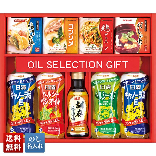 いつもの料理の味わいを豊かにする調味料や様々な食用油を詰合せた、どなたにも安心して贈ることのできるバラエティ調味料ギフトです。