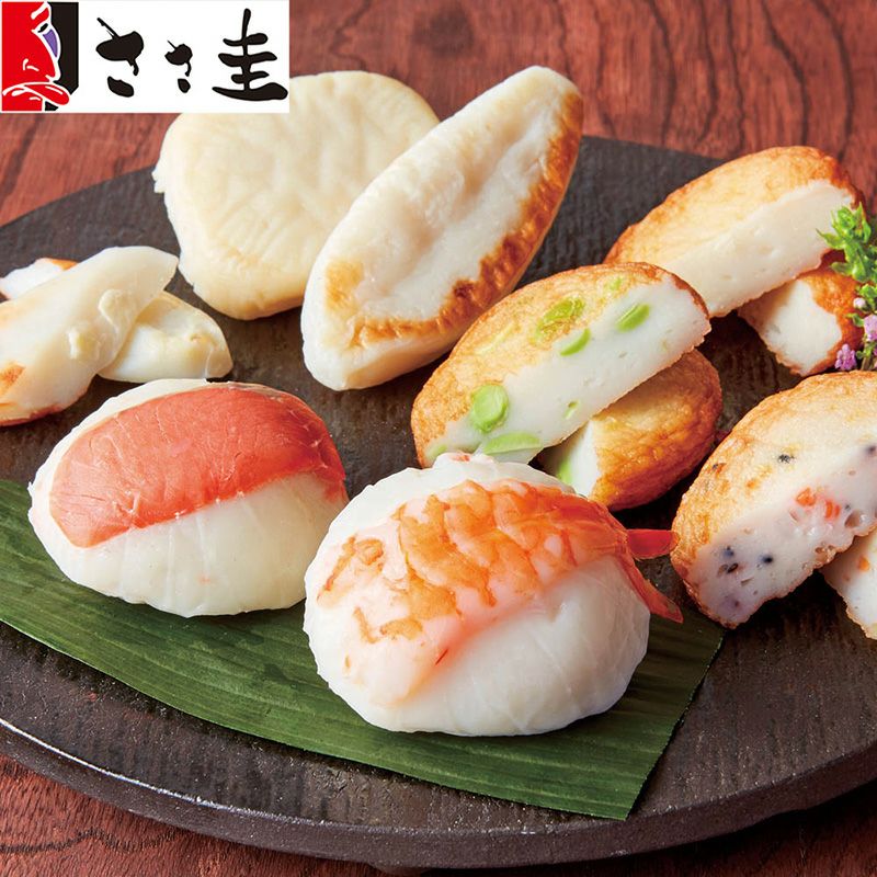 上質なすり身を使用し、きめ細やかな食感と魚本来の味を引き出した笹かまぼこ吉祥をはじめ、「ささ圭」自慢のオリジナル蒲鉾の詰合せです。