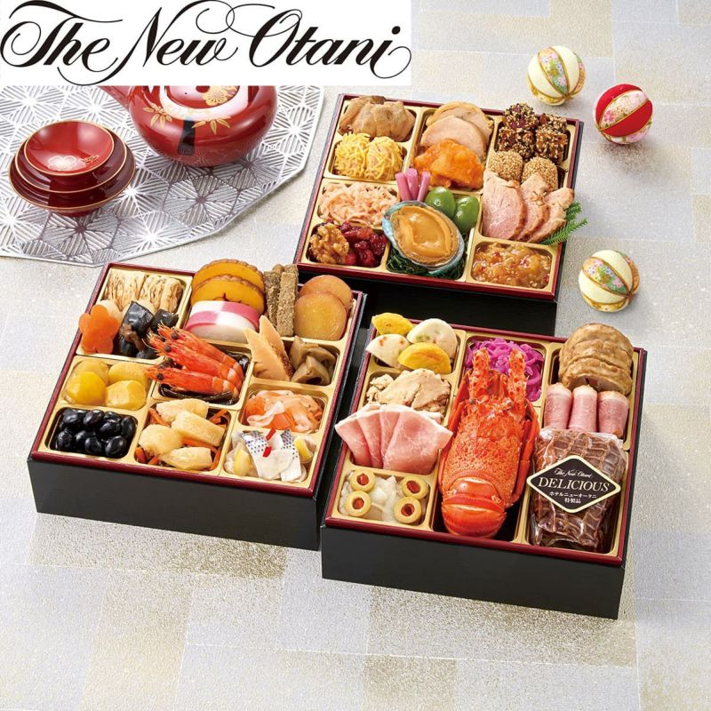 和の重は、伝統的なおせち食材とこはだかぶら和えや柔らかく炊き上げた国産白花豆煮。洋の重は、十勝ハーブ牛ローストビーフやロブスター。中華の重は、国産豚を黒糖で仕上げたローストポークと鮑煮が入った豪華なお重となっております。半世紀の歴史に培われた「ホテルニューオータニ」王道のおせちをご堪能ください。【数量限定】