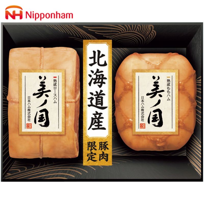 素材は北海道、技は日本ハム。北海道 プレミアム 美ノ国 北海道産豚肉のみに限定し、時間をかけて匠の技で丁寧に仕上げたハムギフトです。