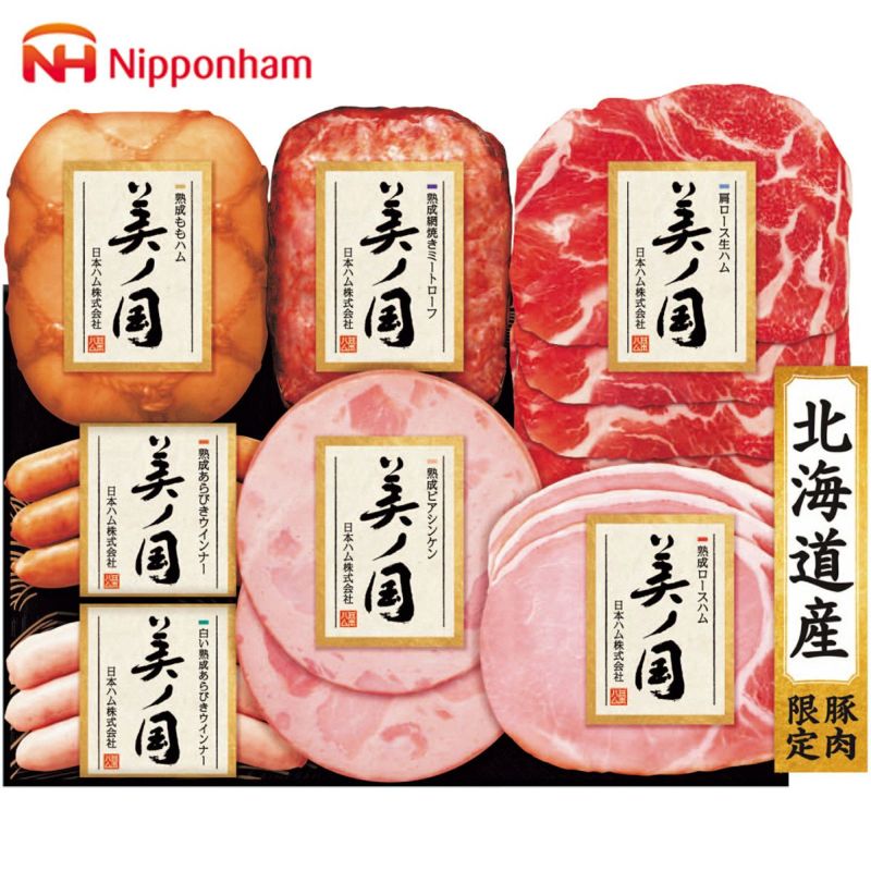素材は北海道、技は日本ハム。北海道 プレミアム 美ノ国 北海道産豚肉のみに限定し、時間をかけて匠の技で丁寧に仕上げたハムギフトです。