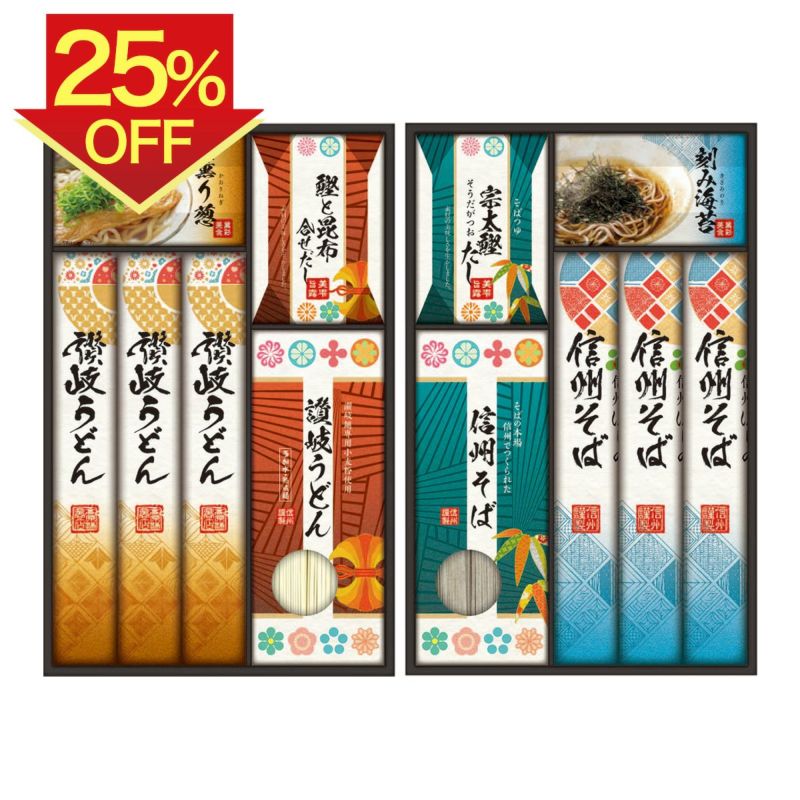 讃岐うどん信州そばをたっぷり詰合せ。つゆや薬味付で便利です。