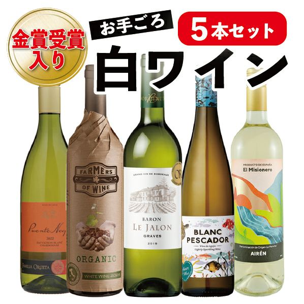 <商品説明> ワインコンクールにおいてプロの目線により審査され、見事金賞を受賞したワインを含む、豪華な白ワイン5本セットです。