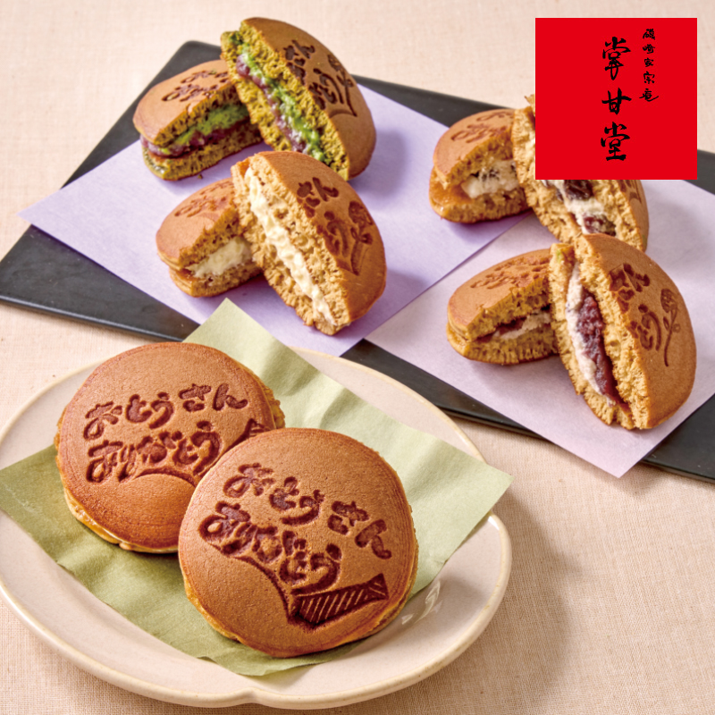 4種類の生どらに感謝の気持ちを込めたメッセージの焼印をつけてお届けします。